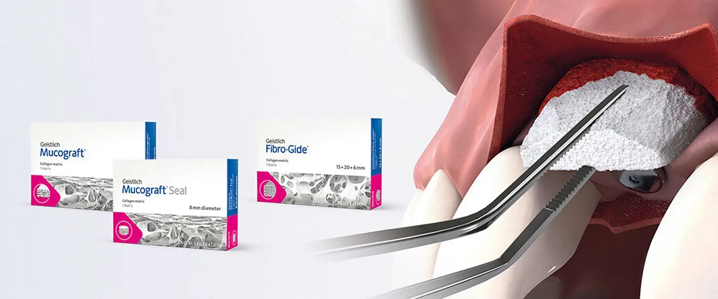 Geistlich Mucograft® 具有专为口腔软组织再生设计的独特的3D胶原基质结构,适用于角化组织再生和软组织退缩。